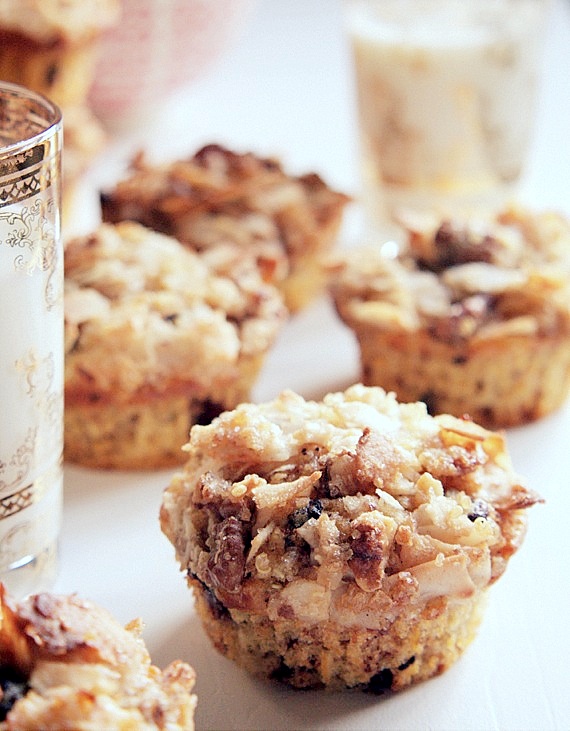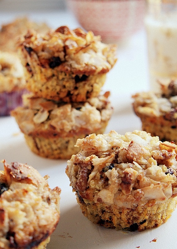 Dzisiaj upiekłam pyszne muffinki z batatami mnóstwem dobroci w środku i na wierzchu. Muffinki z batatami, quinoa, orzechami, kokosem, czekoladą… Tak, dzisiaj miałam przegląd w spiżarce. Tu i ówdzie znalazłam pootwierane torebki z bakaliami i innymi cudami. Postanowiłam niezwłocznie nimi się zająść. Przyznam, że zaraz po upieczeniu zjadłam dwa muffinki na śniadanie. Nie mogłam się im oprzeć!