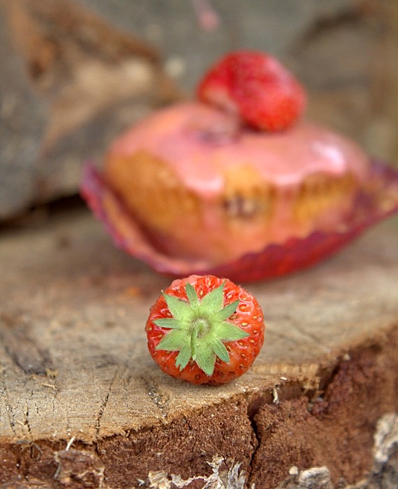 - Pokrój truskawki w kostkę i przetrzyj przez sito. Ukręć mus z cukrem pudrem. Dodawaj cukier po trochu. Być może będziesz potrzebować więcej cukru lub mniej w zależności od wielkości truskawek. Polukruj muffinki i udekoruj truskawkami.