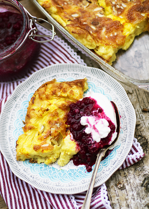 Naleśnik z piekarnika to danie szwedzkiej kuchni, które Szwedzi jedzą na słodko ze smażonym boczkiem i konfiturą z borówki brusznicy lub na słodko z bitą śmietaną i jakimś dżemikiem czy wyżej wymienioną konfiturą.