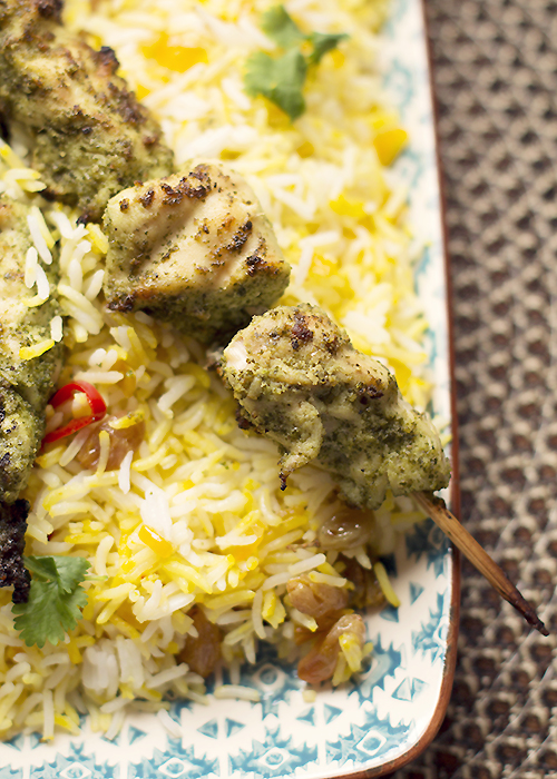 Ostatnio jestem na etapie potraw z jarmużem i dzisiaj chcę Wam zaproponować grillowanego kurczaka marynowanego w jarmużowym pesto. Do kurczaka ugotowałam szafranowy ryż z dodatkiem rodzynek, czerwonej chili i cebuli, ryż przypominający pilaf. Kurczak i ryż to idealny duet na szybki obiad.