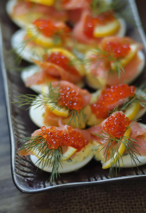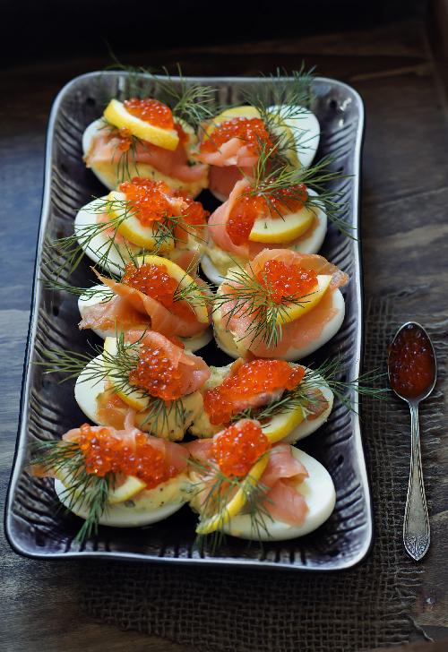 Faszerowane jajka z łososiem o łososiowym kawiorem