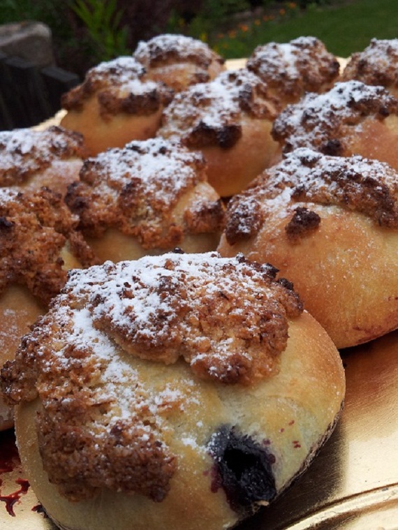 Przepis na jagodzianki z migdałową kruszonką