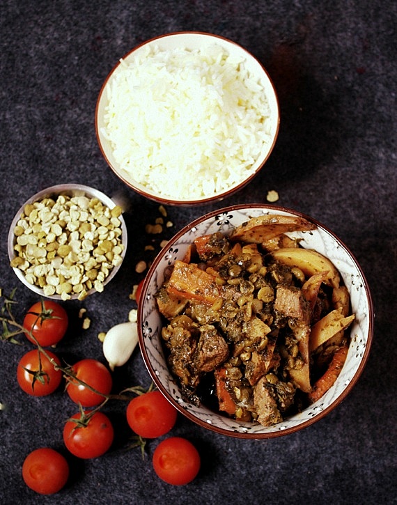 Dawno nie gotowałam po persku! Miałam zamiar ugotować perski gulasz z żółtą soczewicą, a tu pusto w słoiku. No ale ja nie jestem osobą, która od razu się poddaje, więc wymyśliłam, że ugotuję gulasz z zielonym grochem łupanym. Wyobraźcie sobie, że taki groch niedawno kupiłam, bo jeszcze nigdy nie próbowałam takiego cuda.