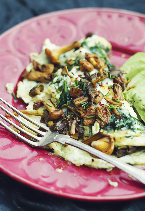 Moje ulubione śniadanie, omlet z kurkami i szpinakiem. A jak grzyby to koniecznie leśne zwłaszcza kurki, które mają lekko pieprzny posmak i idealnie pasują do omletu. Często słyszę opinie na temat grzybów, że nie mają one żadnych wartości odżywczych. To, że grzyby zawierają dużo błonnika, minerałów i są niskokaloryczne jest wystarczającym argumentem, aby je często jeść. Mało tego, niektóre gatunki grzybów to super antyutleniacze.