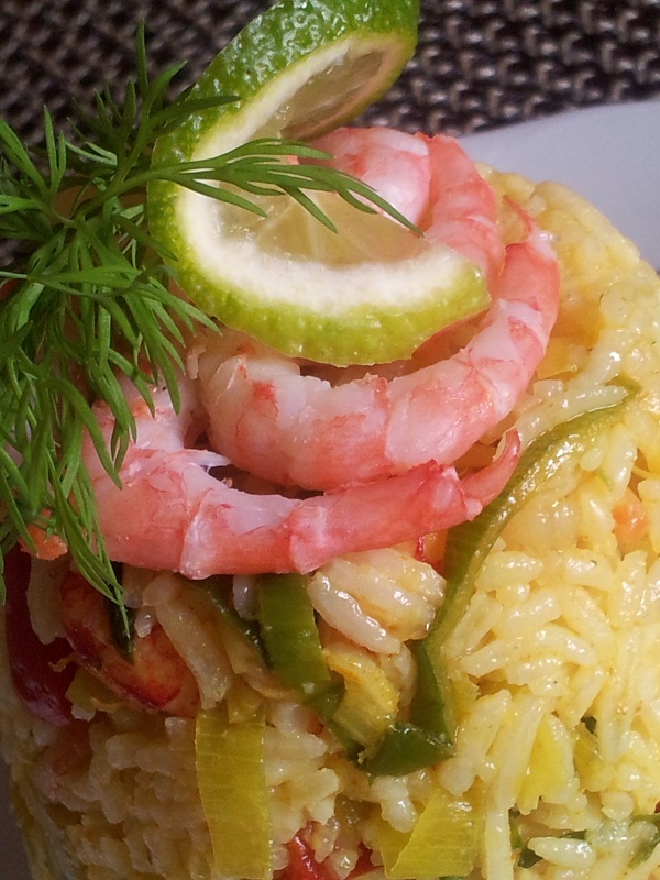 - Wymieszaj delikatnie ryż z ciepłymi warzywami i owocami morza.