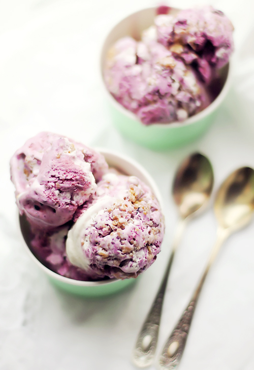 Na te upały mrożony deser jak najbardziej. Polecam jagodowe parfait z kruszonką podprawioną kardamonem. Szczyptę kardamonu dodałam nawet do parfait, za radę jednej z czytelniczki. Kardamon i jagody to świetna para, Polecam!