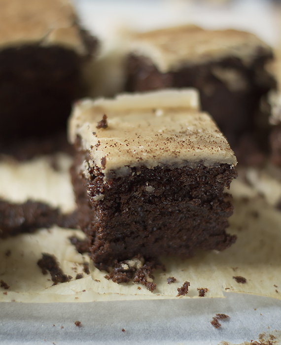 - Rozpuścić masło i dodać pozostałe składniki na pomadę. Wymieszać i lekko przestudzić. Posmarować ciasto pomadą. Ja dodatkowo posypałam piernik zmieloną kawą. Pokroić ciasto na kawałki. Smacznego!