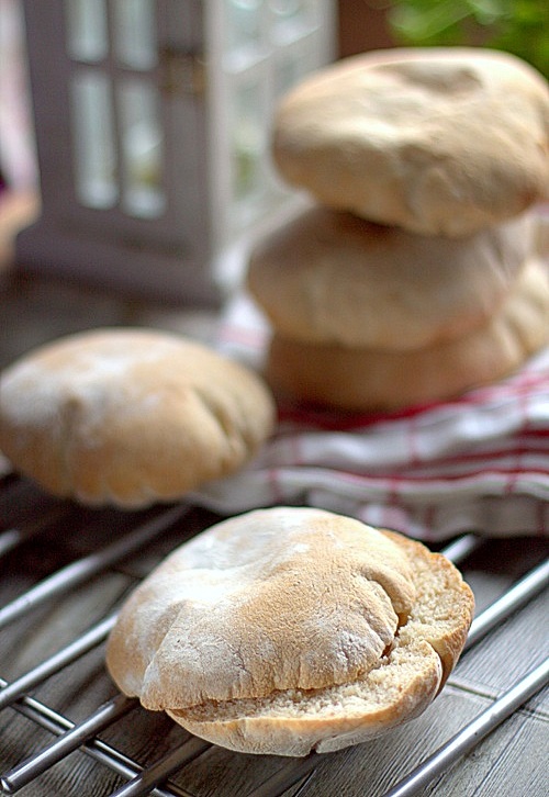 Wypróbowałam nowy przepis na pita chlebki, tym razem z dodatkiem mąki grahamki. Trochę się obawiałam, czy pita chlebki napuszą się, ale jak widać na zdjęciach moje obawy były bezpodstawne. Spuchły na maxa!