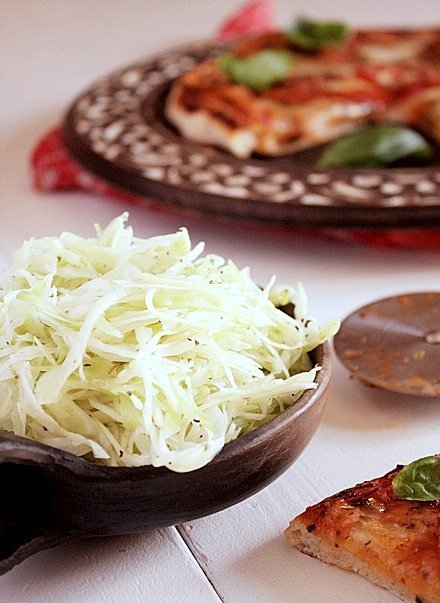 Ostatnio podpasowała nam włoska kuchnia. Dzisiaj kolejny przepis a właściwie dwa. Pierwszy z nich to surówka do pizzy z białej kapusty. Jest to prosta surówka zrobiona jedynie z białej kapusty i przypraw w postaci, dobrej oliwy, octu winnego, pieprzu, suszonego majeranku i soli. Myślicie, że oszalałam! Wcale nie. Tą surówkę dostaniecie do każdej pizzy w włoskiej pizzerii. Bardzo smaczna surówka, a i pizza smakuje jeszcze lepiej.