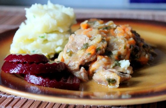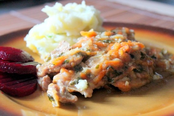 Chodzila za mna karkowka. Wpadla mi w oko ladna sztuka miesa, wiec sie dlugo nie zastanawialam nad dzisiejszym obiadem, potrawka z karkowki z warzywami. Jeszcze tylko zerklam czy mam buraczki… byly i cale szczescie, bo nie musialam leciec do sklepu. Czasami lubie zjesc taki szybki tradycyjny obiad bez zbytniego wymyslania.