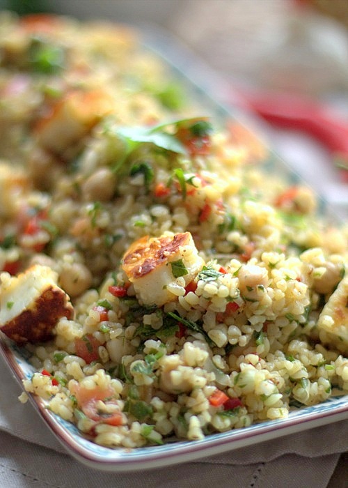 Lekka sałatka tabbouleh z ciecierzycą i halloumi