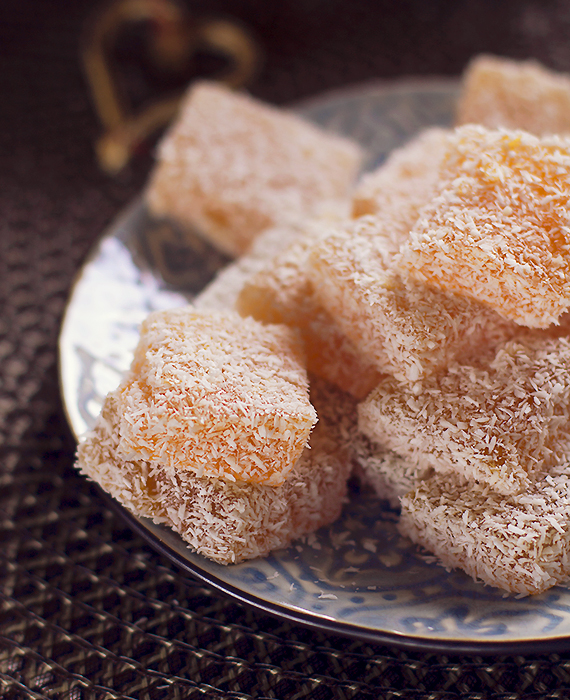 Na drugi dzień pokrój galaretkę w kostkę i obtocz w kokosowych wiórkach. Przechowuj w lodówce.