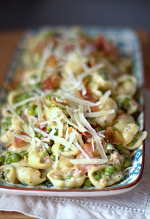 Dzisiaj przygotowałam danie z makaronu inspirowane przepisem Jamiego Olivera. Zielony groszek, wędzony boczek i mascarpone, a do tego świeżo utarty parmezan. Pycha makaron! Smacznie, szybko i tanio!