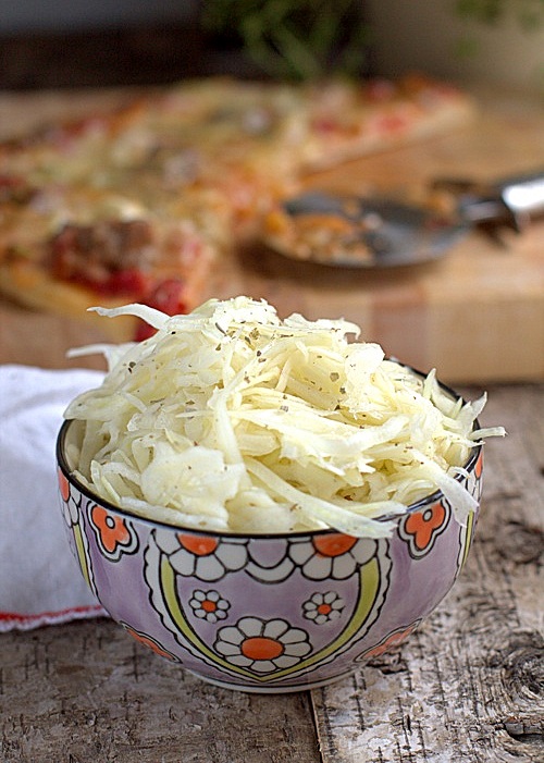 Nie zapomnij o włoskiej surówce do pizzy, która jest najprostszą surówką pod słońcem. Wystarczy poszatkować białą kapustę i wymieszać z winnym octem, oliwą oraz doprawić majerankiem, pieprzem i solą. Najlepsza surówka do pizzy!