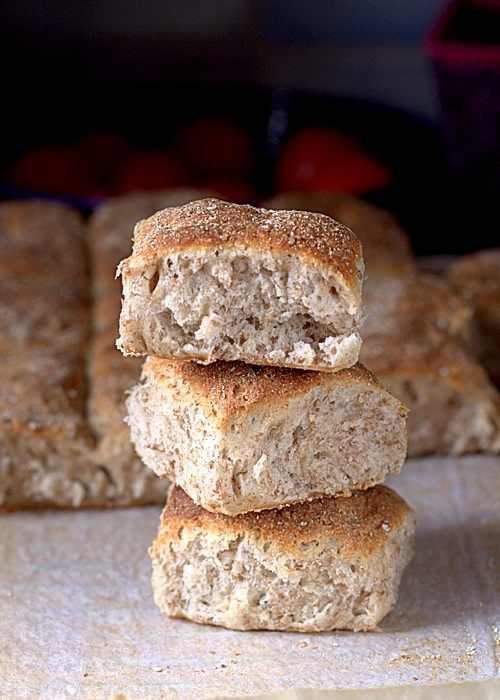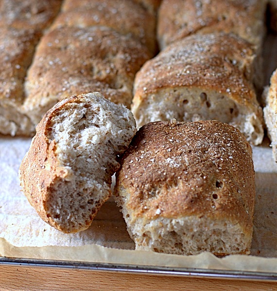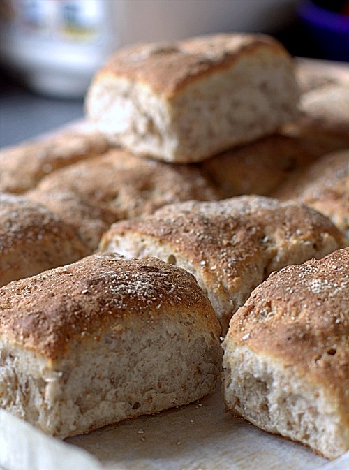 Pszenno żytnie bułki z blachy to kolejny chleb z blachy tak zwany odrywany. Chleb bogaty w błonnik, bo upiekłam nie tylko na żytniej mące ale również dorzuciłam połamane żyto. Jeśli nie macie możliwości zakupu żyta to proponuję otręby żytnie lub ulubione nasiona.