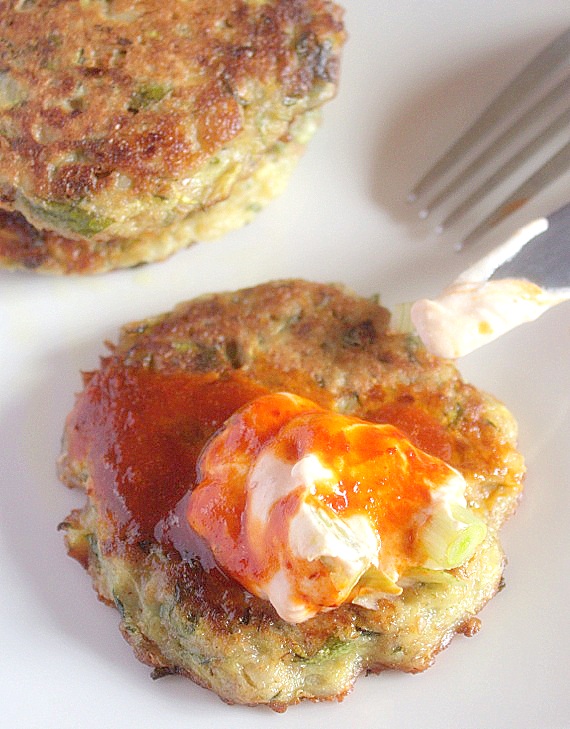- Wymieszaj lekko jogurt z sosem z chili i posyp szczypiorem. Podaj do placków z cukinii.