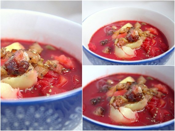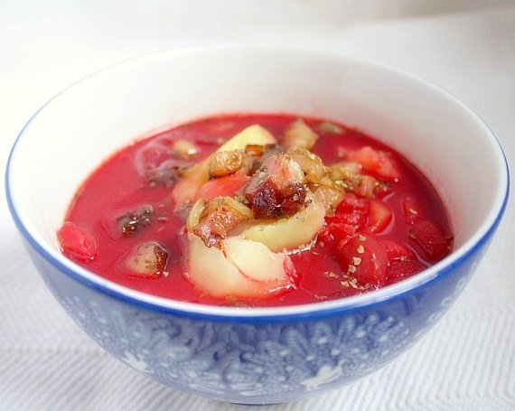 Wczoraj ugotowałam pyszny barszcz ukraiński. Ulubiona zupa moich dzieci. Tym razem podałam barszcz ukraiński z ziemniakami ugotowanymi osobno i okrasą, tak jak to robiła moja babcia. O dziwo, ze ja w ogóle pamiętam takie szczegóły… Ale właśnie taki barszcz smakuje mi najbardziej!