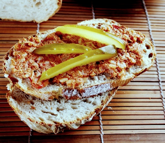 Paprykarz świetnie pasuje na kanapki. Oczywiście u mnie świeżo upieczony chleb na zakwasie…