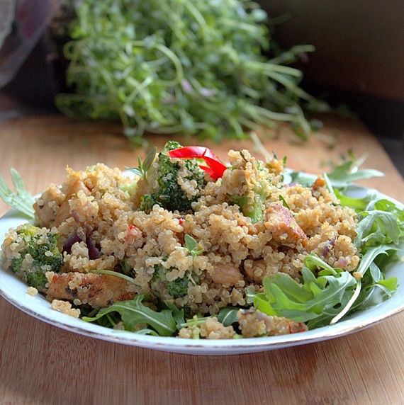 Przepis na quinoa stir fry z brokułami i kurczakiem