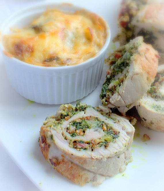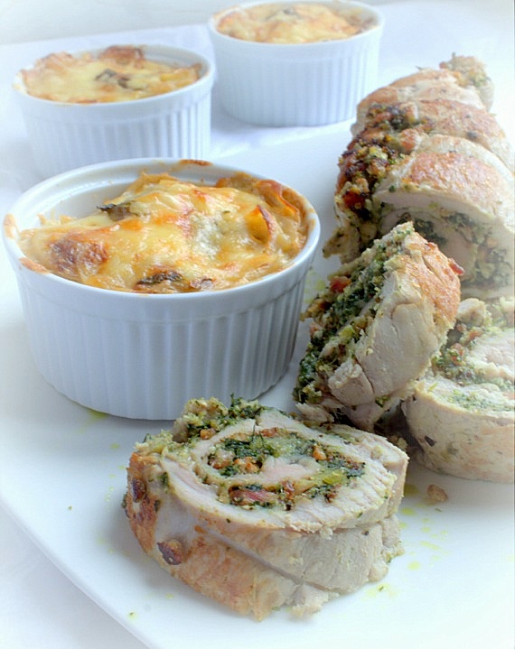 Zapraszam na pyszny obiad. Dzisiejsze menu to rolada z polędwicy wieprzowej nadziewana szpinakiem i boczkiem. Do rolady zrobiłam mini zapiekanki ziemniaczane z dodatkiem pietruszki. Uwielbiam takie proste obiady, nieskomplikowane obiady.
