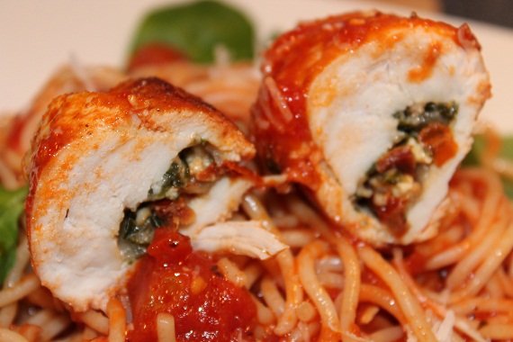 Dzisiaj na odmiane bardzo szybki obiad , bo zrobiony z piersi kurczaka. Naszla mnie ochota na roladki faszerowane serem feta, i suszonymi pomidorami. Przepis wzbogacilam jeszcze swiezym szpinakiem i startym parmezanem.