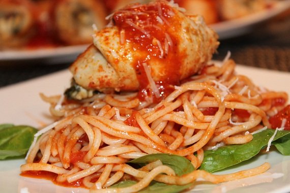 Przepis na roladki z kurczaka z pomidorowym spaghetti