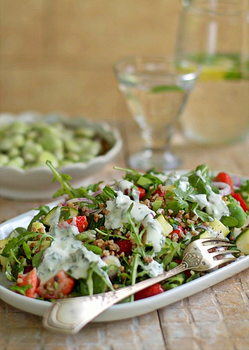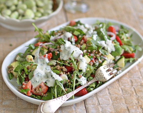 Kolejna letnia sałatka do grilla, która na pewno przypadnie Wam do smaku. Sałatka na bazie gryczanej kaszy z awokado, bobem i truskawkami, do której podałam pyszny dressing z jogurtu o smaku miodowo miętowym.