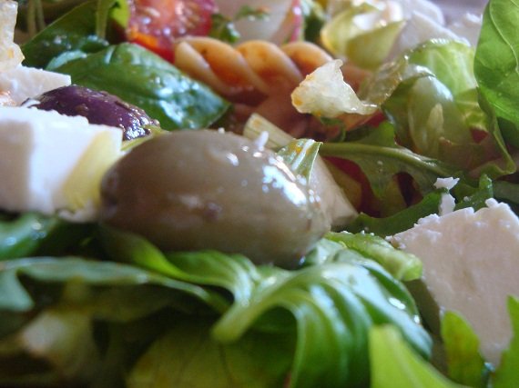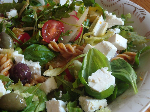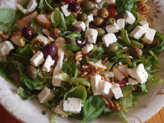 Przepis sałatka makaronowa z kurczakiem, pesto i fetą