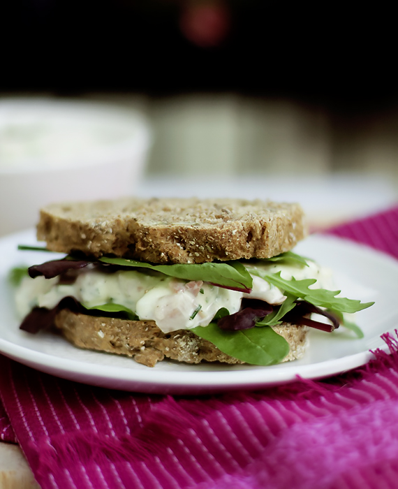 Sałatka świetnie nadaje się na kanapki i ja takie nie omieszkałam zrobić. Do kanapek wykorzystałam żytni chleb na drożdżach.