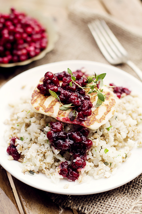 Wartościowa sałatka na ciepło z pęczaku, kalafiora i halloumi. Lekko doprawiona ziołami, uwieńczona karmelizowanymi czerwonymi borówkami. Idealna na lunch do pracy czy lekką kolację. Uwielbiam wymyślać lekkie sałatki na ciepło, które są kolorowe, wysokoenergetyczne, a ponadto nie wymagają jakiś wyszukanych składników. Pomyśleć, że kiedyś nie lubiłam jęczmiennej kaszy, właściwie żadnej kaszy, a teraz…Pęczak to idealna kasza na ciepłe sałatki, do burgerów czy gołąbków.