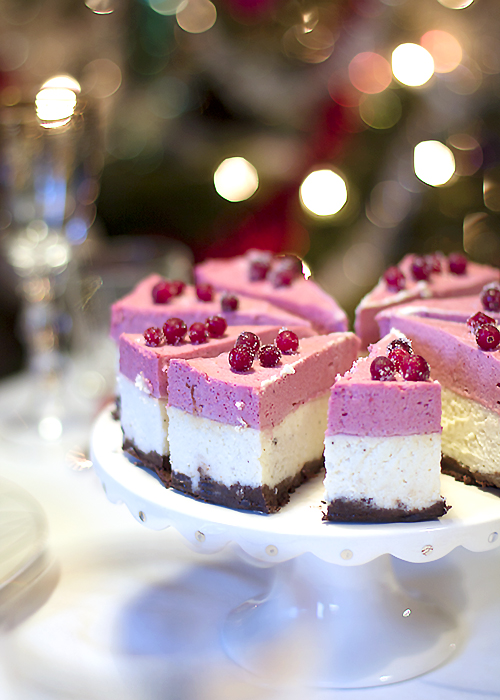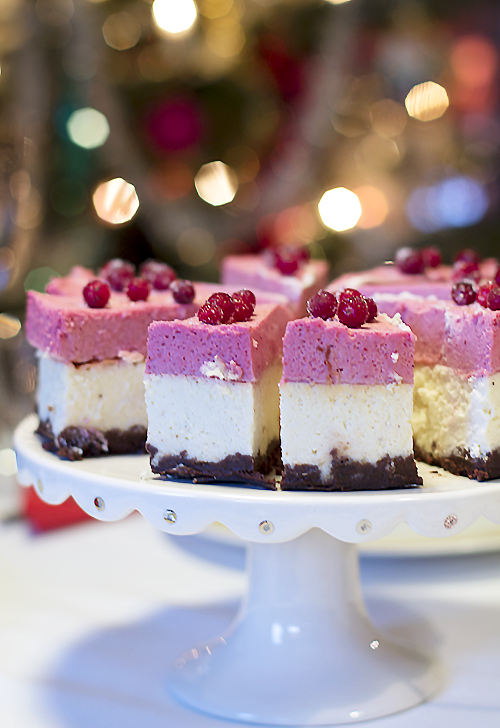 Jeszcze jeden słodki wypiek, który upiekłam na święta to sernik na czekoladowym spodzie z musem z żurawiny. Cierpka żurawina świetnie pasuje do delikatnego, kremowego sernika i nadaje mu orzeźwiający ton. Sernik wszystkim bardzo smakował, więc przepis wykorzystam pewnie nie jeden raz.