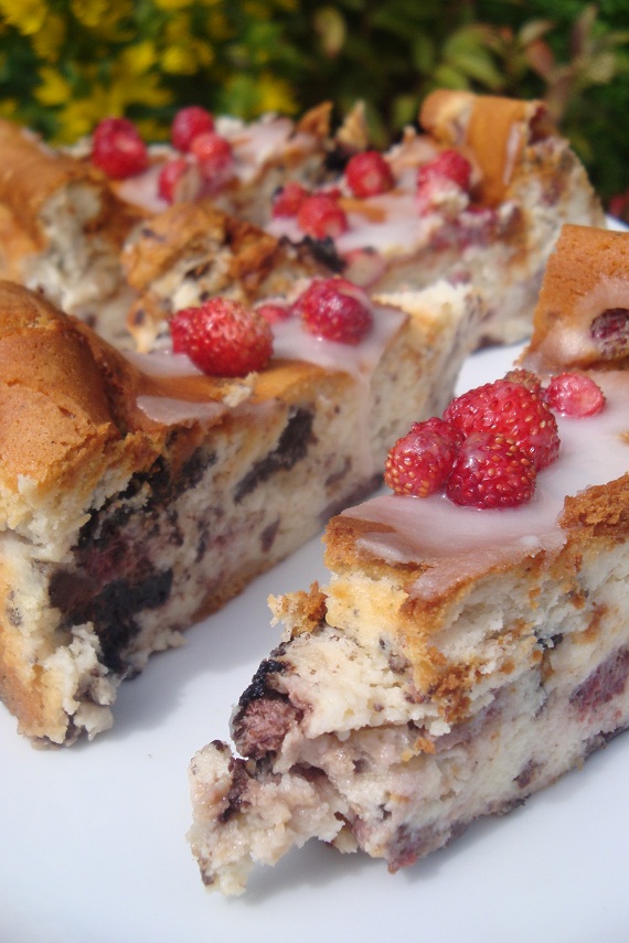No tak, sezon jagodowo poziomkowy w pełni, a właściwie to już prawie po poziomkach. Jeszcze zdążyłam upiec ten smaczny sernik właśnie z poziomkami. Do sernika dodałam także parę ciastek oreo, herbatniki i gorzką czekoladę.