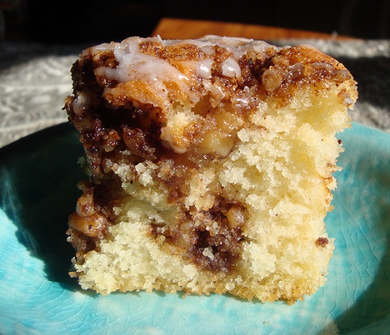Po raz pierwszy złamałam trend i upiekłam ciasto ucierane z nadzieniem podobnym do tego co używam do szwedzkich bułeczek cynamonowych. Nadzienie cynamonowe wzbogaciłam włoskimi orzechami oraz zamieniłam biały kryształ na brązowy. Ciasto wyszło niezwykle puszyste i wilgotne. Nic dziwnego , że zostało zjedzone w mgnieniu oka.
