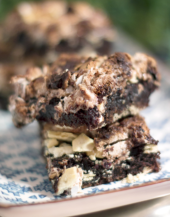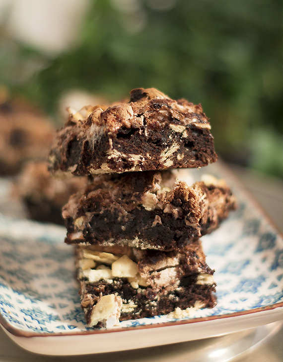 Wczoraj zrobiłam domowe marshmallows i jak się domyślacie miałam plan. Chciałam upiec smore`s brownies ale użyć domowej roboty marshmallows. Muszę przyznać, że z sercem na ramieniu wstawiłam brownies do piekarnika. Obawiałam się, że wszystko się rozpłynie, a tu niespodzianka! Marshmallows tylko lekko się rozpuściły, a następnie ponownie zastygły po ostygnięciu ciasta. Wyglądały niemalże jak beza. Smore`s brownies to kaloryczna bomba. Dzisiaj zamiast czekolady dodałam masło i kakao oraz cukier muscovado przez co brownie nabrało lekko karmelowego smaku. Polecam to brownie wszystkim miłośnikom czekolady!