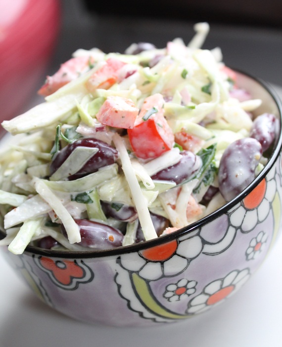 - Odcedz fasolę i wymieszaj z resztą warzyw .