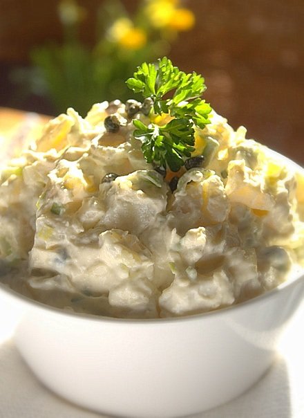 W tym roku na święta wielkanocne zrezygnowałam z polskiej sałatki ziemniaczanej. W zamian zrobiłam szwedzką sałatkę ziemniaczaną, której głównym składnikiem są również ziemniaki… i praktycznie nic więcej nie licząc majonezu.