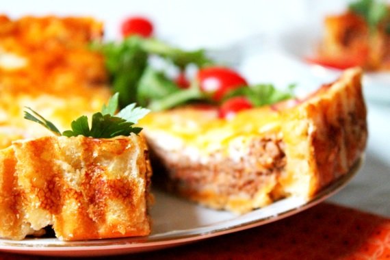 Zawsze kupuje duze paczki miesa mielonego, tzw. ekonomiczne. Zazwyczaj dziele na dwie porcje. Z jednej robie mielone kotlety lub male klopsiki, a z drugiej sos bolognese. To wlasnie sos bolognese jest podstawa tej szybkiej tarty, zakladajac oczywiscie, ze sos jest juz wczesniej ugotowany.
