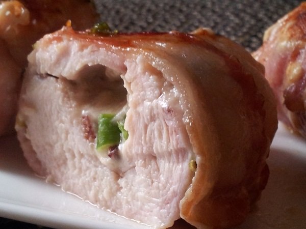 O yes, yes ! Zgadza się! Bardzo „cheesy” i pożywne roladki z kurczaka, które po prostu są przepyszne, nadziane żółtym, tartym serem, twarożkiem, bekonem i posiekanym, świeżym, zielonym chili.