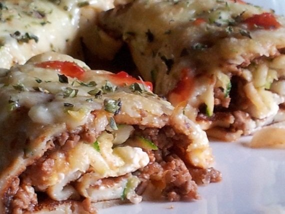 - Jeśli masz naleśniki z poprzedniego dnia to wykorzystaj je. Masz jednak zamiar smażyć naleśniki to dodaj trochę startej cukinii do ciasta. łśćąężóń