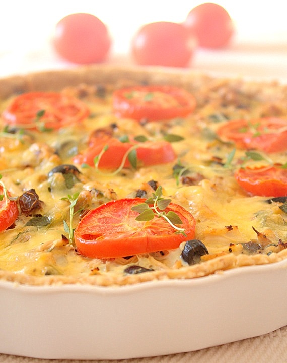 Tarta wytrawna z kurczakiem i cukinia, czyli przegląd obiadowych resztek z całego tygodnia. Nie ma chyba prostszej potrawy na tani obiad niż wytrawna tarta. Dzisiaj kolejna tarta z kurczakiem, którą przygotowałam z cukinią, suszonymi pomidorami i czarnymi oliwkami.