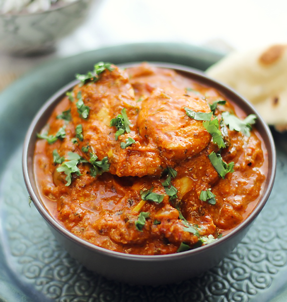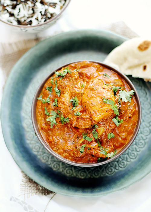Zazwyczaj przyrządzam tikka masala z odfiletowanych udek z kurczaka. Mięso z udek jest soczyste w porównaniu do piersi z kurczaka. Od pewnego czasu marynuję piersi z kurczaka w jogurcie z przyprawami, smażę, a następnie wrzucam na koniec do sosu. W ten sposób pierś z kurczaka jest równie soczysta jak udka, a przy tym bardzo aromatyczna.