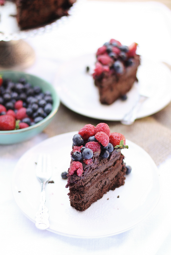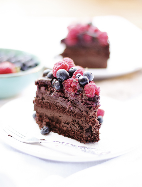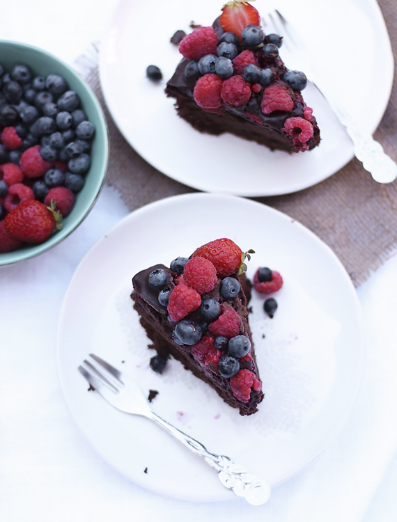 Polecam tort czekoladowy z owocami, najchętniej jagodowymi. U mnie dzisiaj borówki, truskawki i maliny.