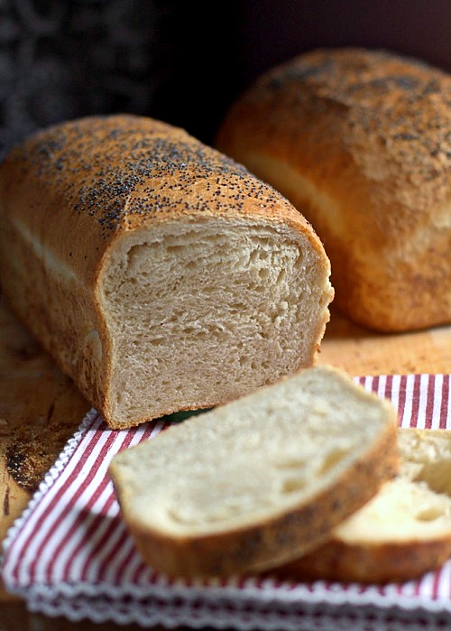 Ten chleb świetnie sprawdza się jako chleb tostowy. Wtedy zazwyczaj posypuję go jeszcze sezamem lub makiem przed pieczeniem.