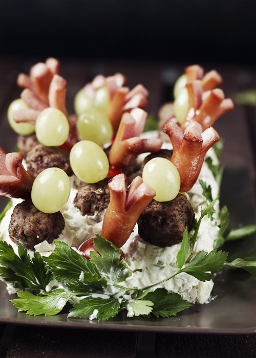 Tort kanapkowy urodzinowy… Tak, tak wczoraj obchodziłam urodziny. Nie powiem, że czułam się pokrzywdzona. Moi milusińscy zawsze pamiętają o mnie. Był więc szampan, kwiaty i prezenty. Na domowe przyjęcie przyrządziłam tort kanapkowy. Tort kanapkowy przełożony delikatną sałatką z ogórka, pora i jabłka. Wytrawny tort udekorowany szwedzkimi klopsikami i małymi parówkami. Idealny na przyjęcie nie tylko dla dorosłych ale i dzieci.