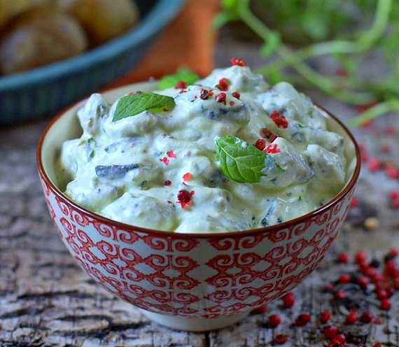 Jest to sałatka na bazie jogurtu. Dla należytego efektu polecam użyć dobrego, gęstego jogurtu typu greckiego o zawartości 10% tłuszczu.Tzatziki ze smażonej cukinii zrobiłam pierwszy raz do mięsnego grilla i bardzo mi smakował. Nic dziwnego, bo bardzo lubię cukinię, a w połączeniu z miętą pieprzową to po prostu rarytas.