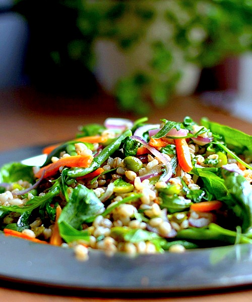 Udka z kurczaka podałam z zieloną sałatką, przyrządzoną z fasoli, bobu, szpinaku i kaszy jęczmiennej. Jak widzicie ostatnio nie mogę się obyć bez kaszy! Sałatka jest pyszna, taka wiosenna. Jeżeli jesteście ciekawi skąd wzięłam bób o tej porze, to mogę zdradzić, że to mrożony.