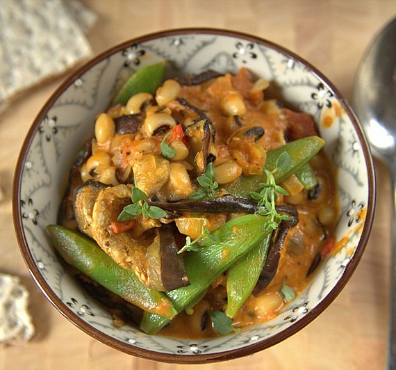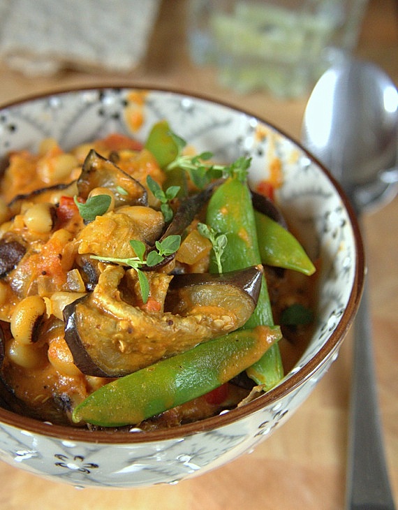 Przepis na wegetariańskie curry z bakłażanem i black eye fasolą