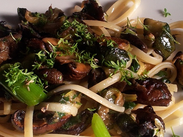 Dziś proponuję czysto wegetariański makaron z grzybami i zieloną cukinią.