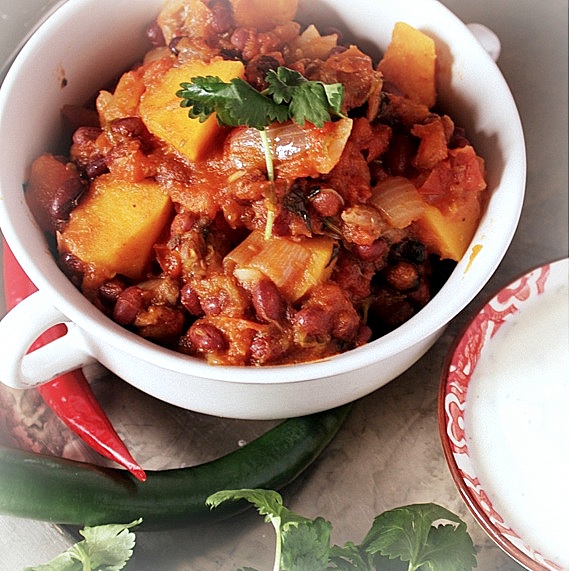 Chili con carne to szybkie jednogarnkowe danie wywodzące się z kuchni meksykańskiej. W tradycyjnym chili głównymi składnikami są mięso mielone i mnóstwo chili, a czasami dodaje się również fasolę. U mnie fasola występuje zawsze, a dzisiaj mięso zastąpiłam piżmową dynią. Polecam to danie szczególnie po wielkim świątecznym obżarstwie. Chili nie zawiera glutenu, pasuje dla osób na diecie LCHF.