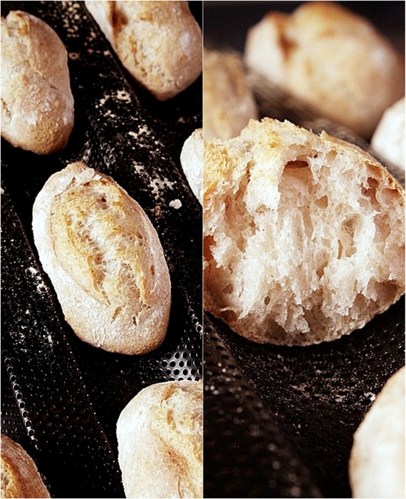 - Natnij bagietki wzdłużi oprósz mąką i piecz w piekarniku na 225º (termoobieg) przez około 10 minut. Ostudż na metalowej kratce.